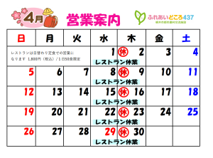 休業日 ・・・ 直売所 木曜 / レストラン 水曜・木曜